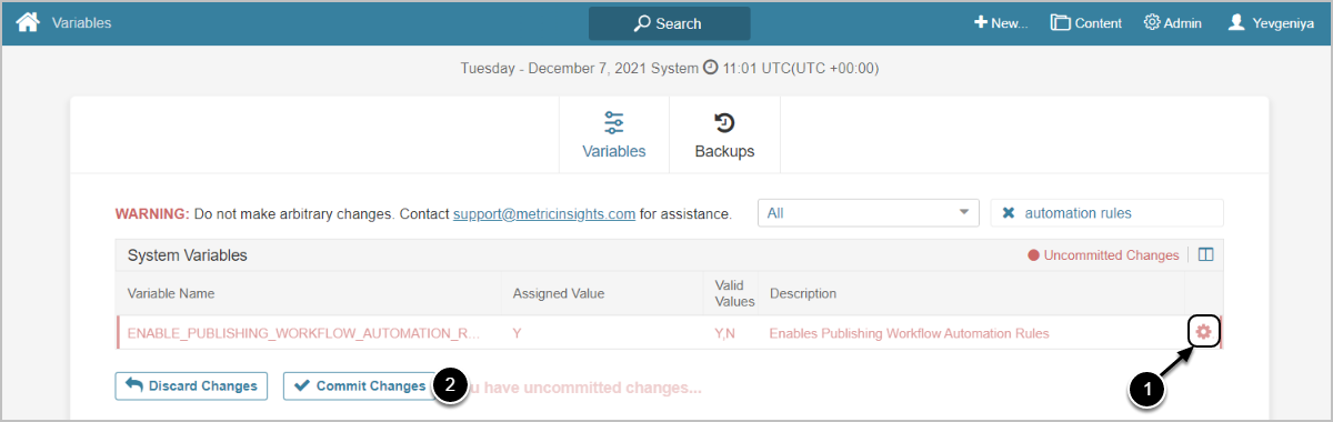 Access Admin > System > System Variables > ENABLE_PUBLISHING_WORKFLOW_AUTOMATION_RULES