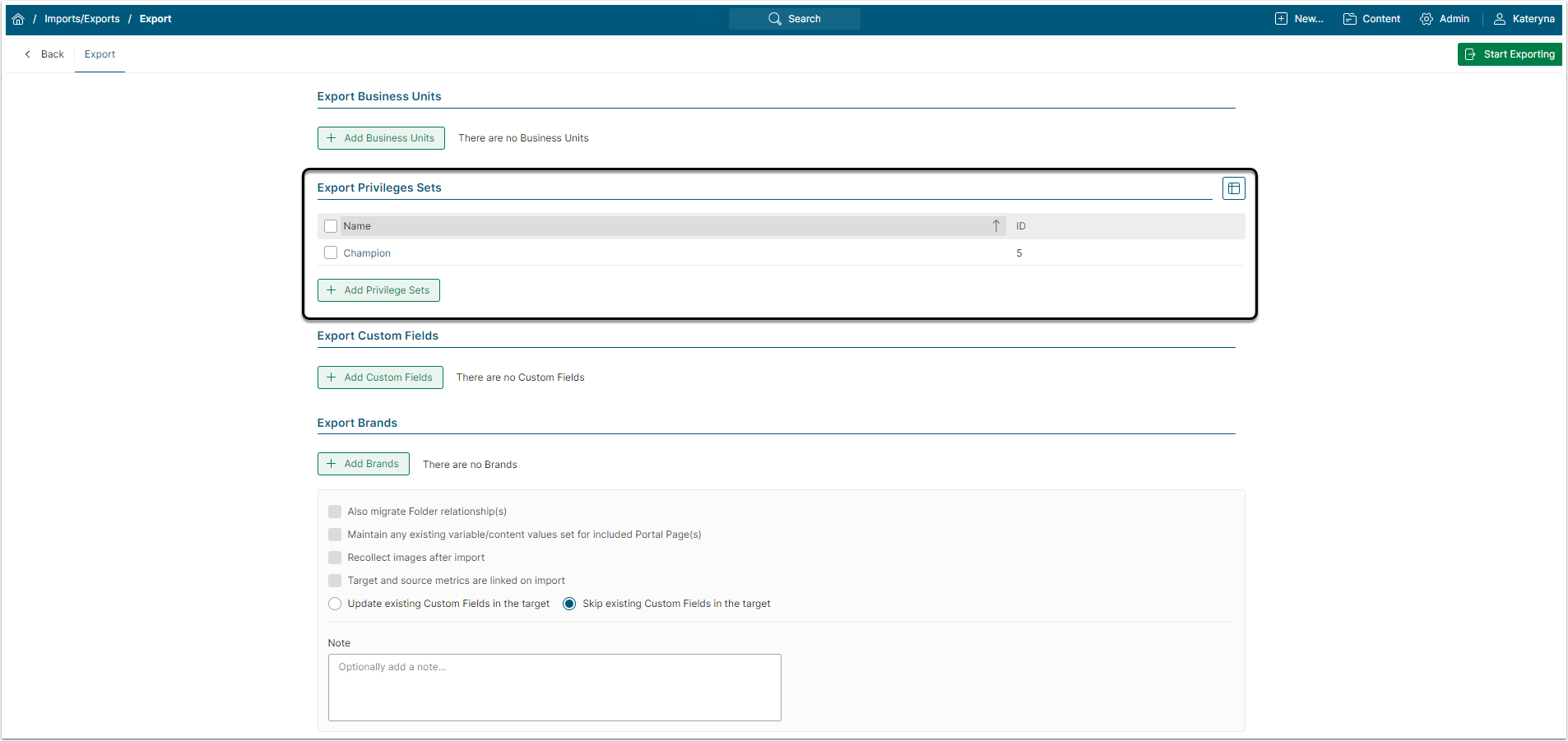 - A Custom Field Section is migrated without Permissions and only with those Custom Fields that are added to the export list