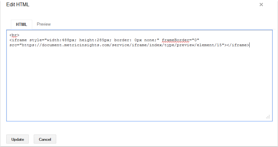 This article details how to embed MI content into a Google Site. There are two ways available.