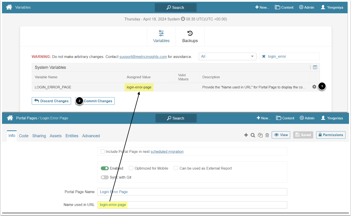- Set Name used in URL of the login error Portal Page as the Variable's Value