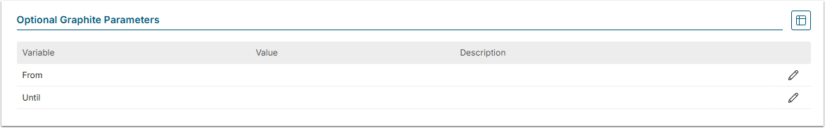 The Optional Graphite Parameters grid allow for configuring date parameters for data collection.