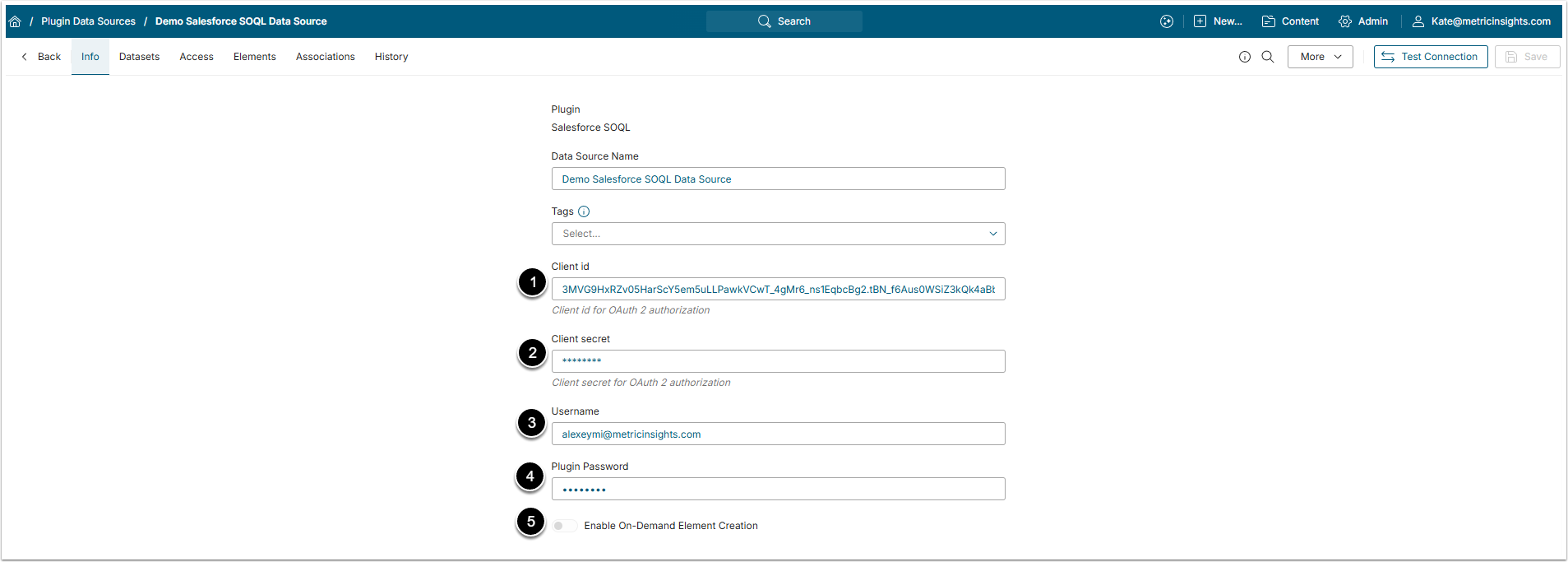 This article describes how to connect to Salesforce using Salesforce SOQL plugin in order to get data and create Elements in Metric Insights.