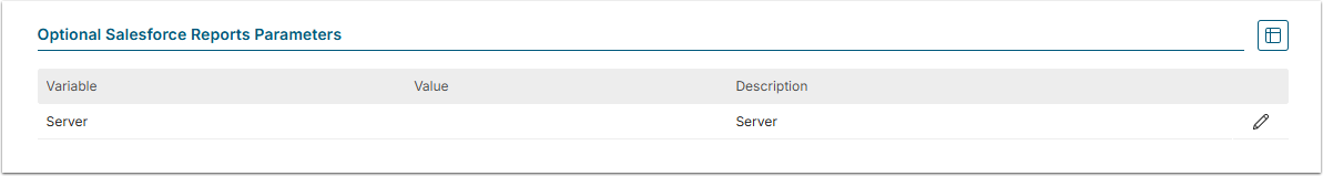 | Server | Specify the name of your custom Salesforce Server that you want to use instead of the default one |