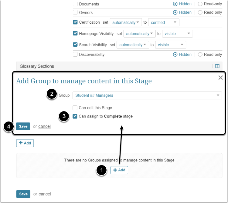 In this Use Case, you create a Glossary Section that contains one or more of the business Terms which a Power User (from one of the managers Groups) will use during review in the publishing workflow.