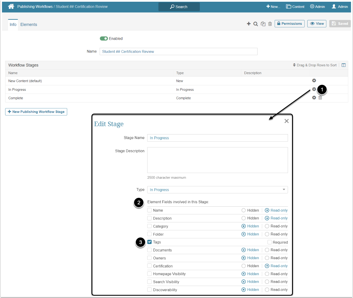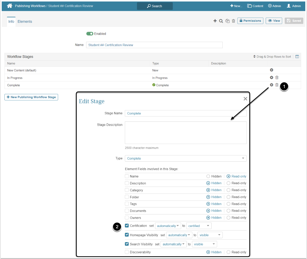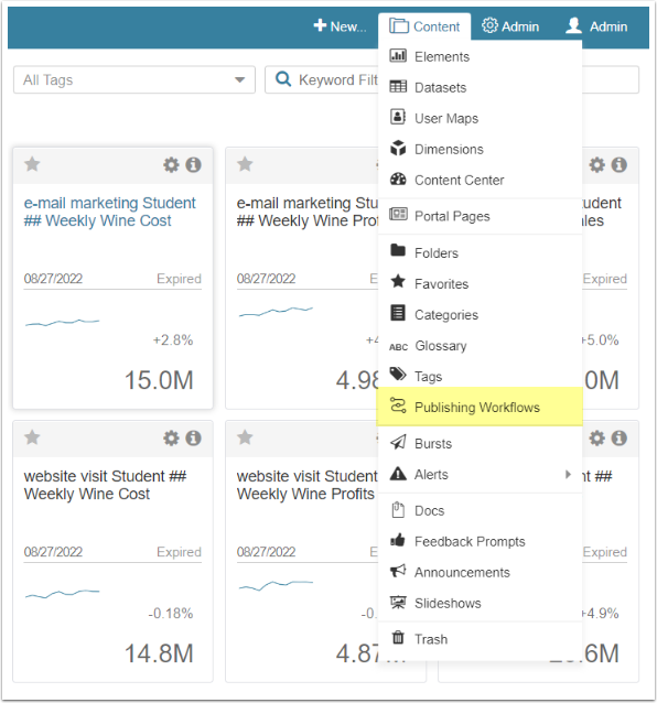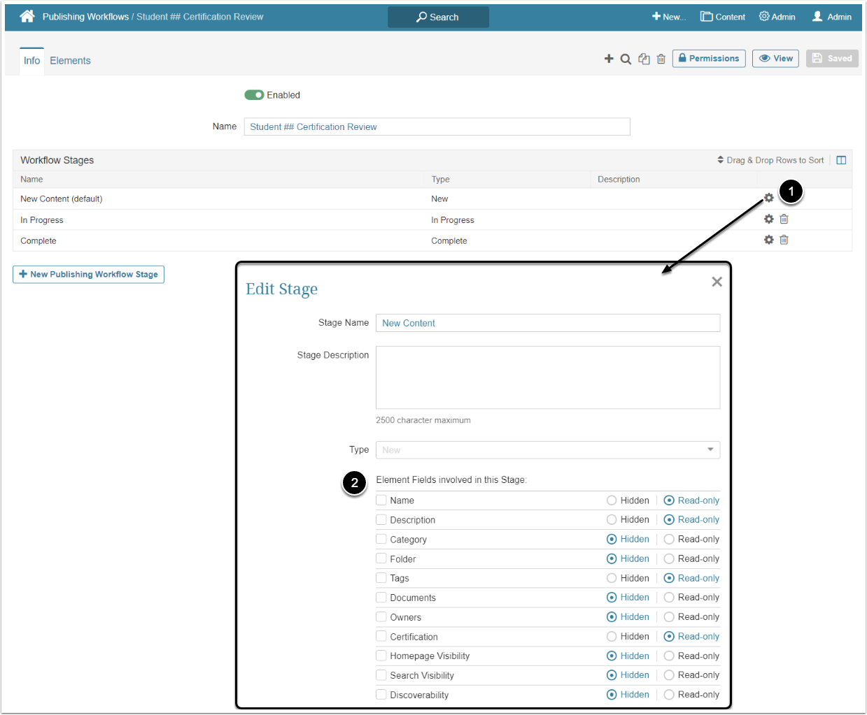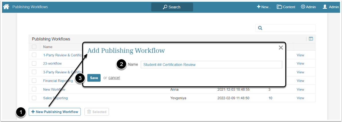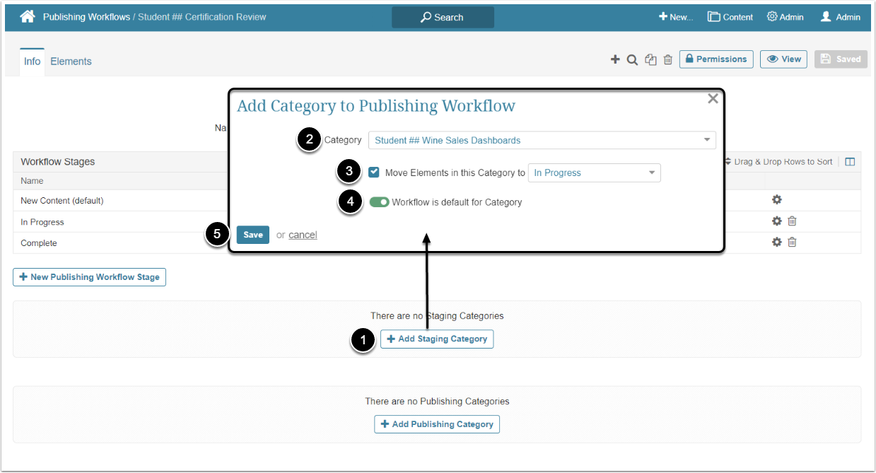 In this section you will create a Publishing Workflow. The Publishing Workflows feature is a way for Administrators to delegate management and supervision of content publishing to Power Users without granting complete edit and delete access to a category content. The functionality helps ensure that new content has been validated by multiple stakeholders and is therefore trustworthy, including accurate metadata and information.