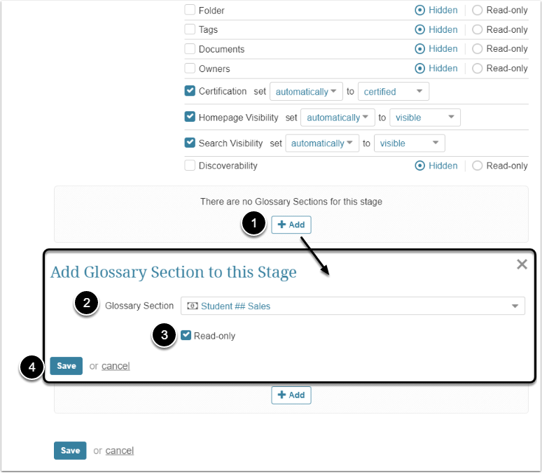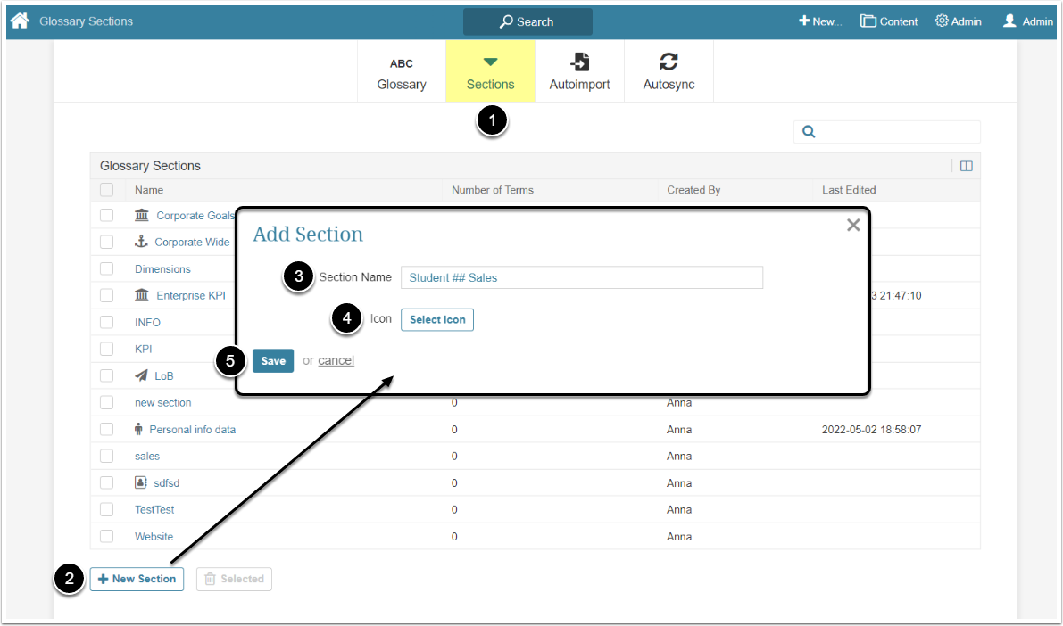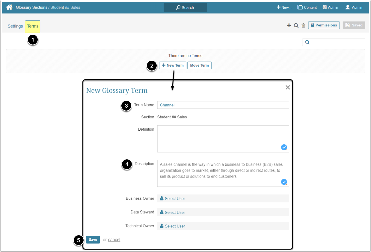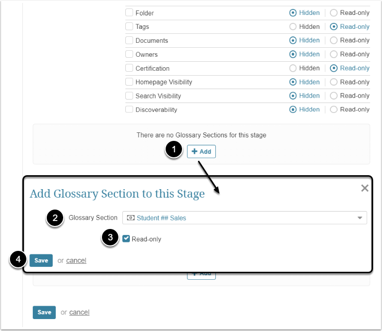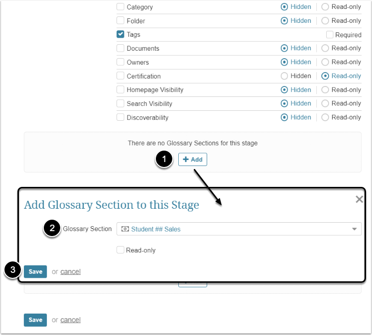 - Glossary Section: Select the "<your name> Sales" Glossary Section from the dropdown menu