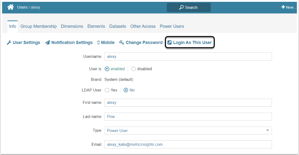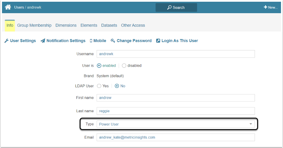 - Group: Select a group to which your user account belongs as a User Group value from the dropdown menu