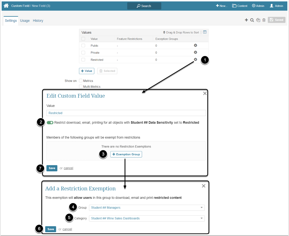 - Custom Field: Select the "<your name> Data Sensitivity" Field from the dropdown menu