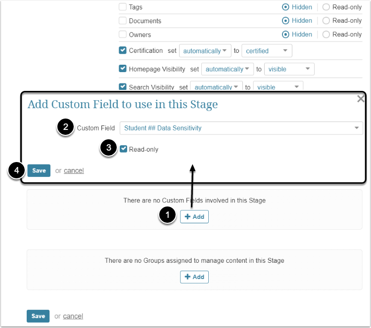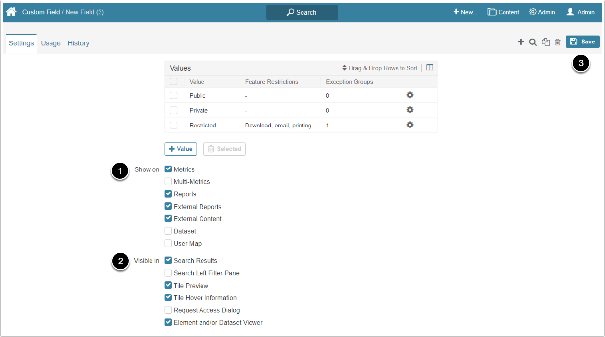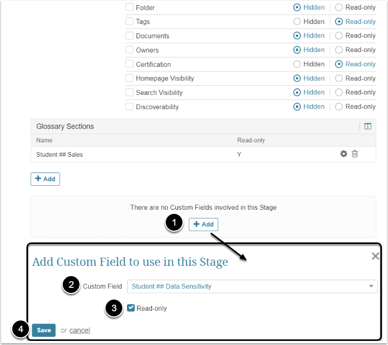 In this Use Case, you add a Custom Field that displays information about data sensitivity.