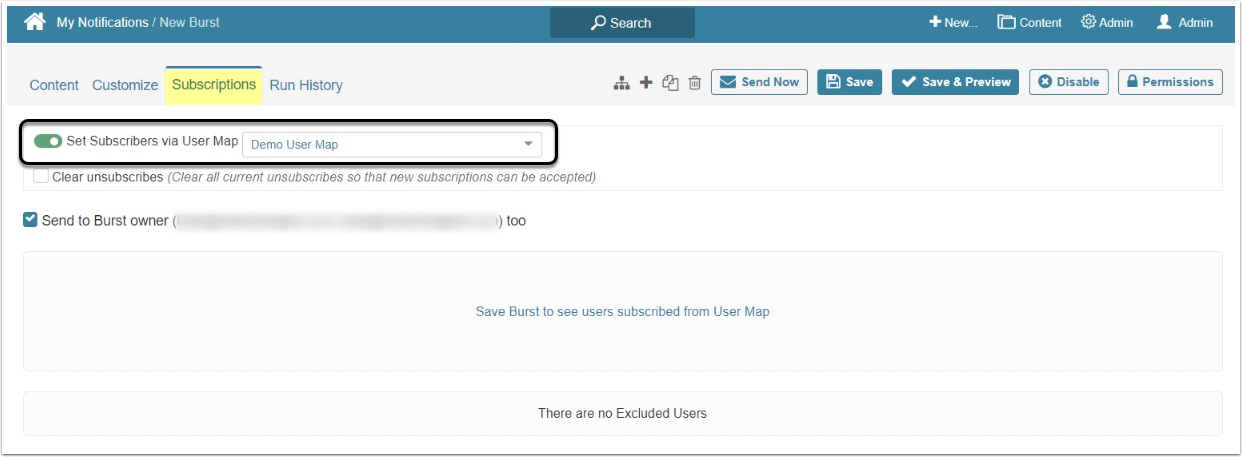 The list of Users that receive the Burst can be set by applying the User Map. For more details go through the Create New Burst article.