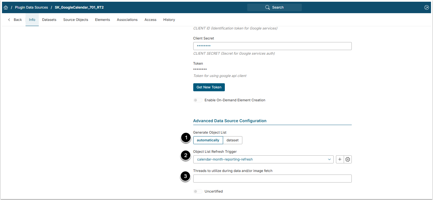 - Object List Refresh Trigger: Select the Trigger that will be used to fetch data via the Google Calendar plugin.