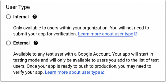 The chosen User Type can be checked in the Audience tab of Google Auth Platform.
