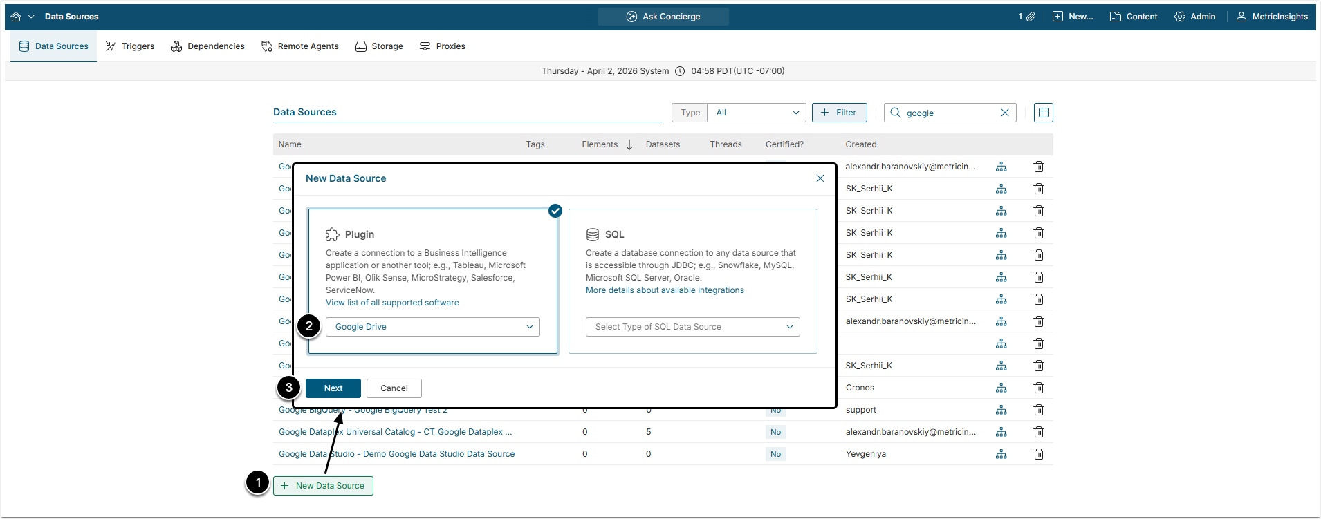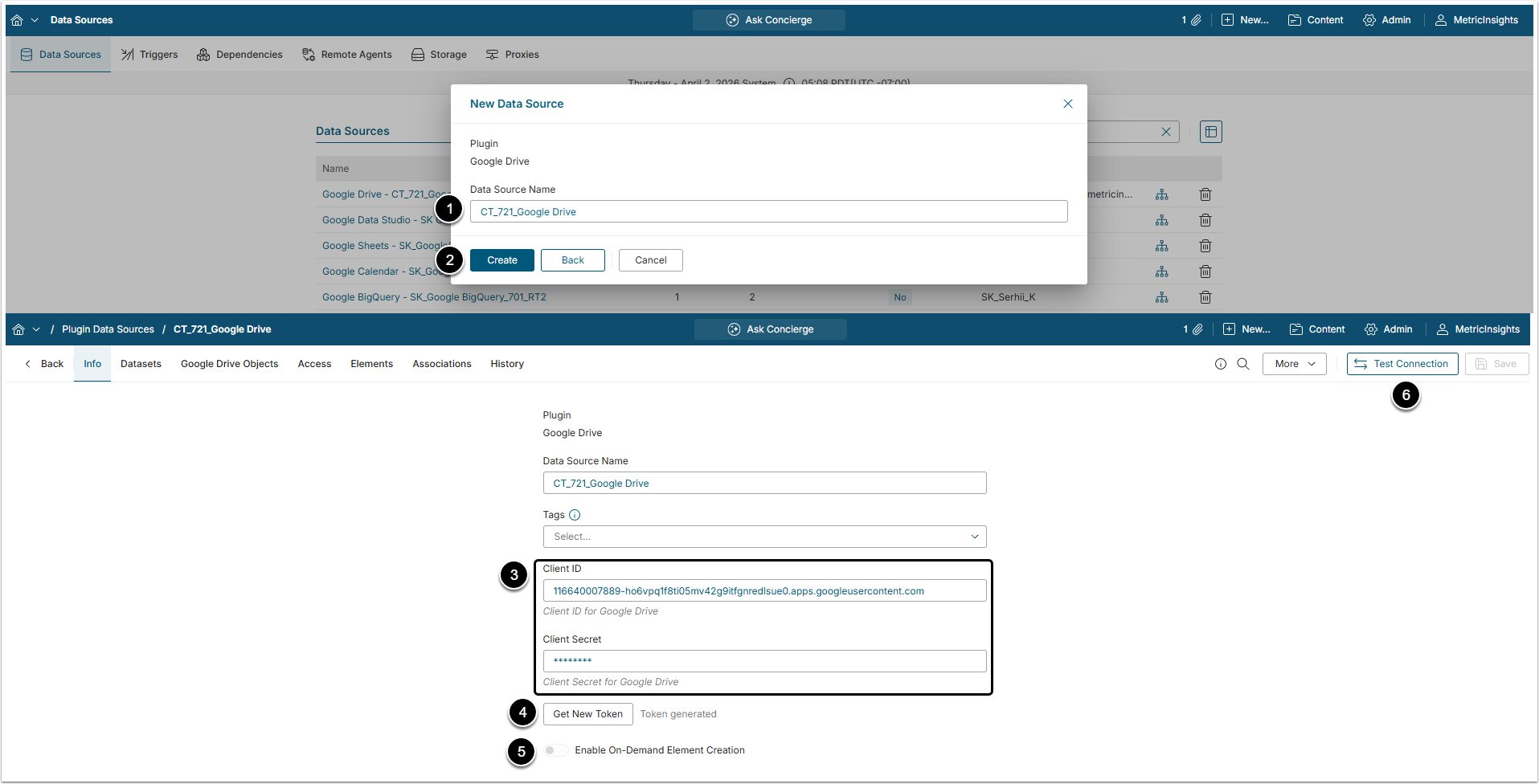 After setting up the Google Side, create a Google Drive Data Source in Metric Insights: