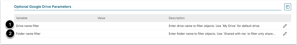 - Drive name filter: Provide a name of the Drive to filter the Objects.
