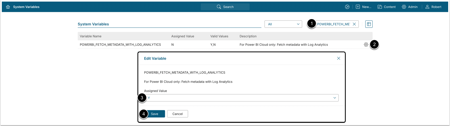 POWERBI_FETCH_METADATA_WITH_LOG_ANALYTICSin the search field. - Click the gear icon.