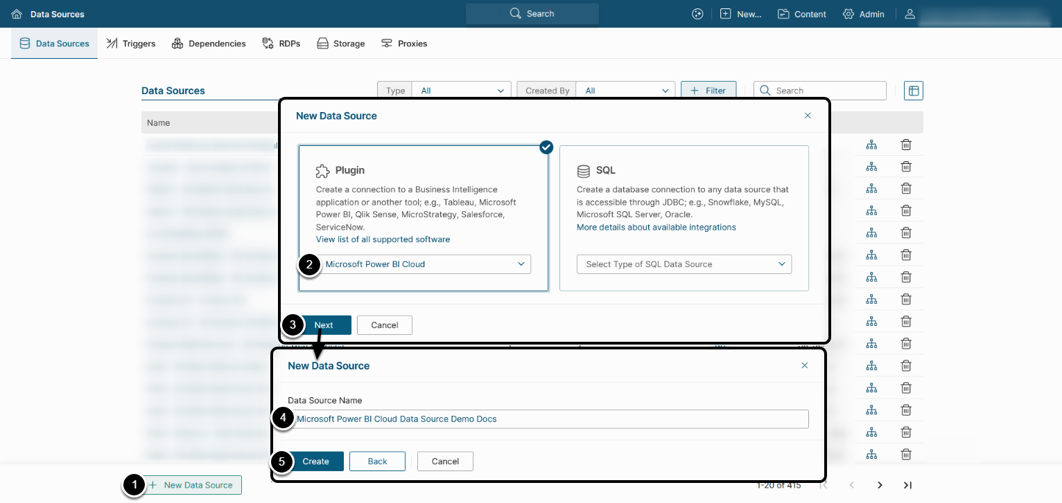 - Choose "Microsoft Power BI Cloud" from Plugin drop-down list.