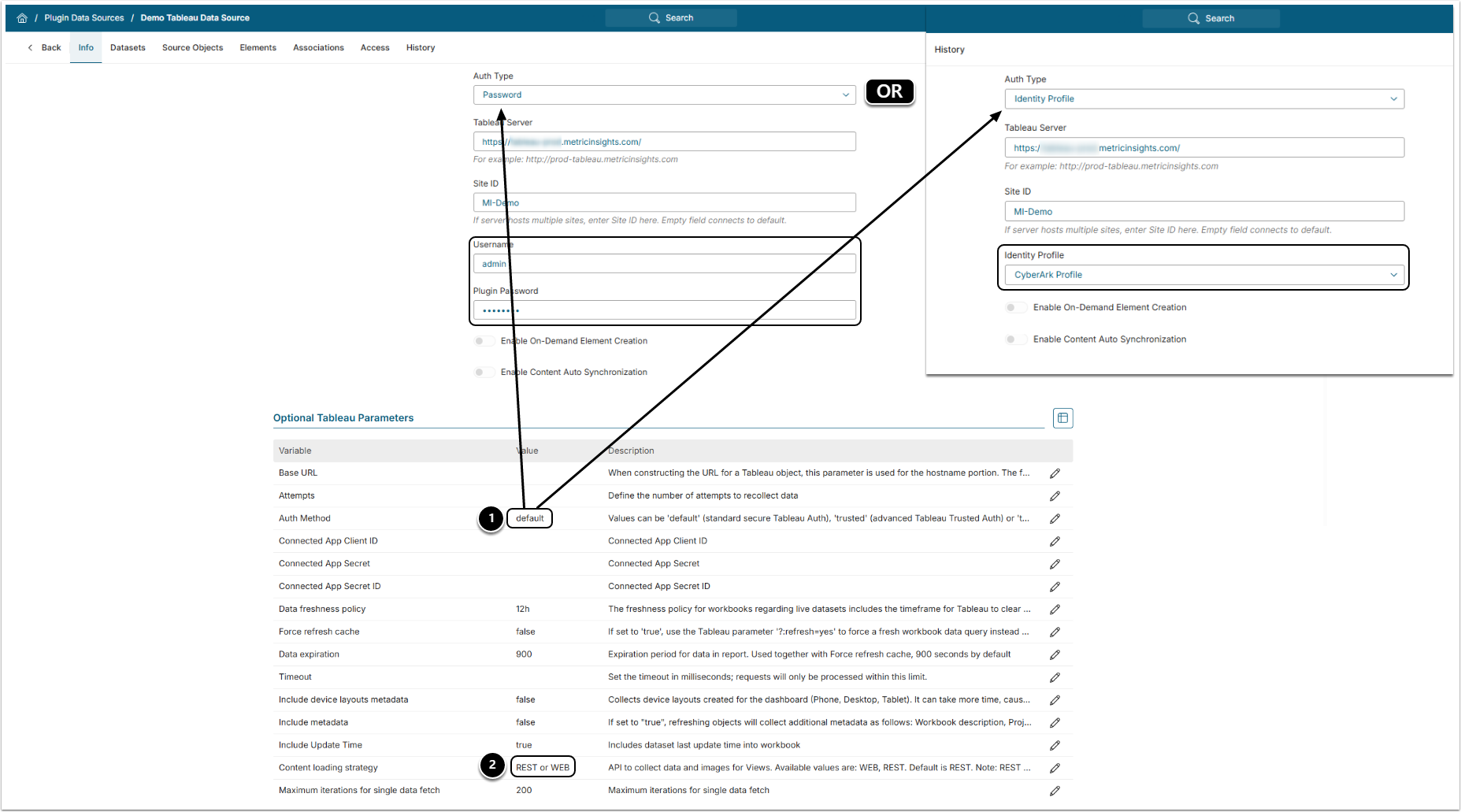 - Specify Username+Password or Identity Profile for REST API to collect OH and MD.